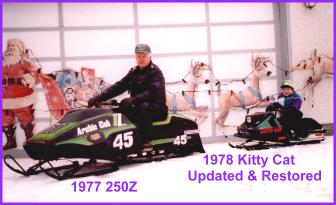| Picture at Christmas 1998 of myself & Grandson "Damian" on his 1978 Kitty Cat (updated & restored) |