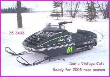 | Lynx 1 Lunger 100 Race Sled 2004-2005 Owned by: Don's Vintage Cats & Magic Powersports This "Lynx" sled is made from parts found in the boneyard at the back. We are using a Hirth 194R 340CC engine. This sled is Son / Father assembled and raced. We hope to finish some races this winter. |